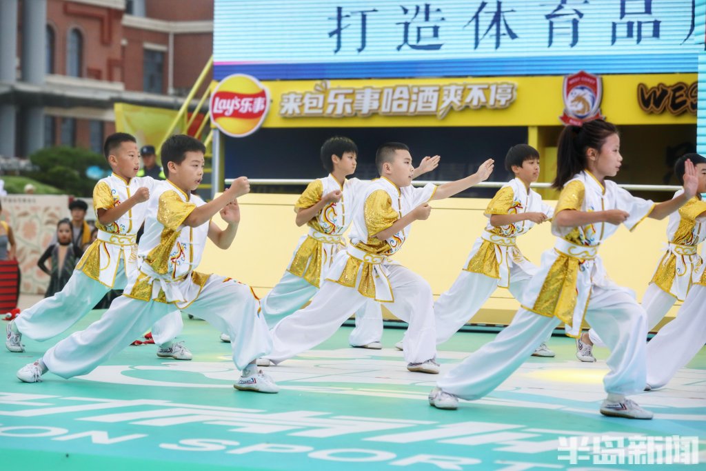 7月26日下午,2024中国•青岛体育文化艺术展演在青岛金沙滩啤酒城正式启幕,启幕仪式上多个团体展示了武术、啦啦操、街舞等节目,吸引了众多游客观赏。